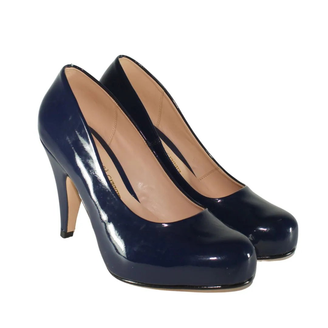 Zapato de charol azul noche, ideal para un look moderno, audaz y lleno de distinción.